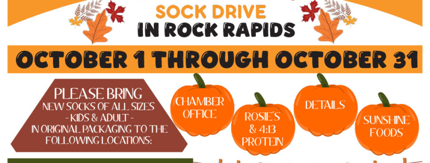 Drop off new socks of all sizes (kid & adult) in original packaging to Chamber office, Sunshine, Details & Rosies.