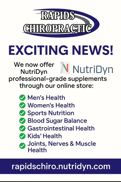 For more information go to our webpage www.rapidschiropc.com …and check us out on Facebook at Rapids Chiropractic!